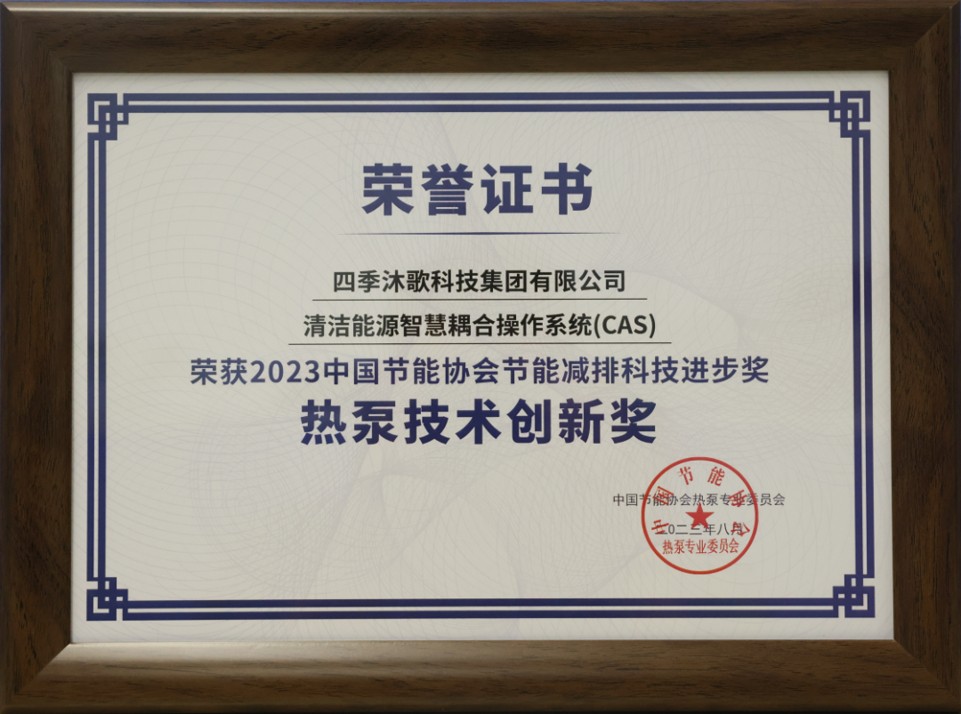 7月31日-8月2日,以“零碳未来,热泵雄心”为主题的2023中国热泵行业年会在南京召开,汇聚行业领导、专家、媒体精英以及来自全国各地的热泵行业从业者共同探讨“双碳”背景下的热泵发展方向。作为邀约参会企业,四季沐歌在众多优秀参评企业中脱颖而出,其清洁能源智慧耦合操作系统(CAS)斩获“2023年中国节能协会节能减排科技进步奖热泵技术创新奖”。