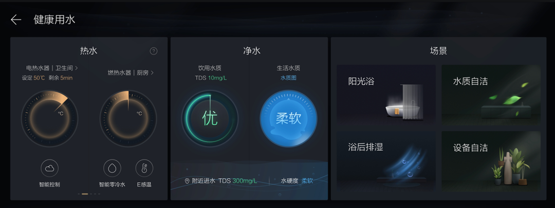 以全屋空气系统为例,传统的控制屏仅仅用来开关设备、查看温度、调节温度,而智家大脑屏依托海尔智家大脑能力,为用户主动带来专属空间的定制空气方案,并能在屏幕上一屏显示,实现包括除醛、新风等空气方案的管理。再比如全屋用水系统,无论是有富硒的饮水,还是恒温恒压的用水都可以一屏可视全屋,进行跨空间各场景的用水管理。不仅如此,下班时进门就能一键开启客厅影音场景、一键预约最舒适的热水洗浴,吃饭时主动推荐营养食谱,出门时还会主动提醒交通和天气等等。