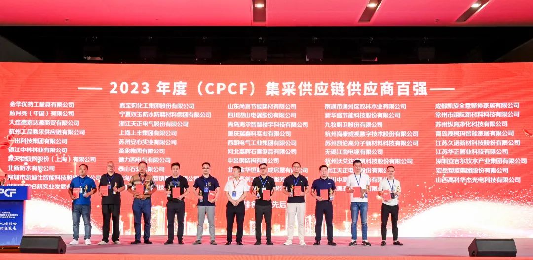 6月8日,2023(第六届)中国集采供应链企业高峰论坛暨中国产业供应链大会于西安盛大召开,安吉尔受邀出席本次年度盛典,并凭借高端的品牌形象、过硬的产品品质、完善的工程服务体系、七星级售后服务标准以及强大的行业影响力,在众多供应商中脱颖而出,摘得“2023年度(CPCF)集采供应链供应商百强”称号。
