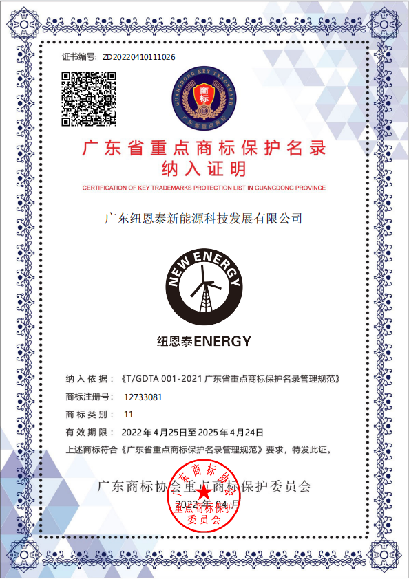 击鼓催征,奋楫扬帆。在万木争荣的无限春光里,纽恩泰喜讯频传。我司商标“纽恩泰ENERGY”在广东省重点商标保护名录纳入证明中脱颖而出,光荣上榜。