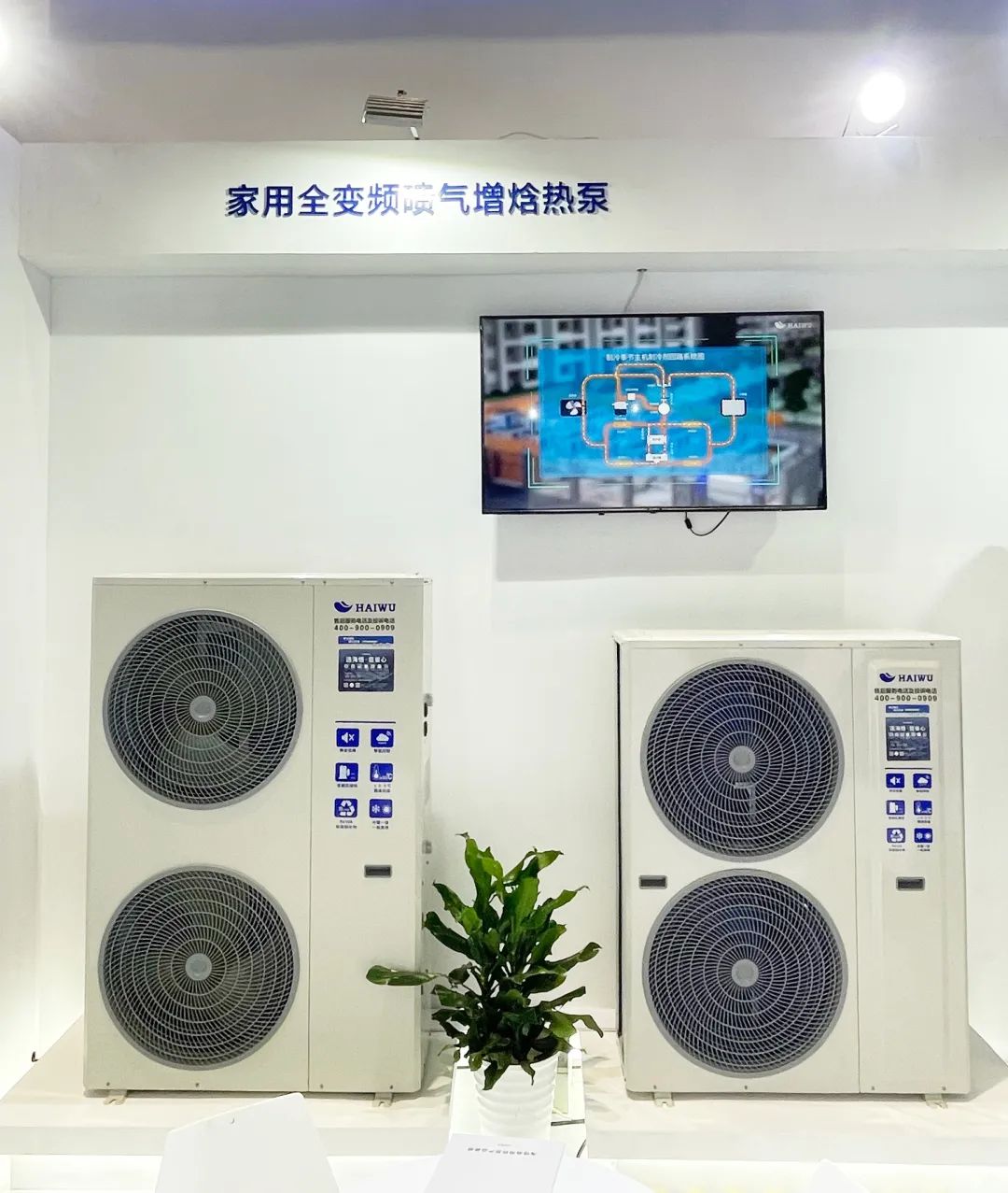 在展会现场,针对不同领域不同的清洁取暖需求,海悟推出全场景清洁取暖解决方案,并展出商用全变频喷气增焓热泵机组、家用全变频喷气增焓热泵机组、CNA小型机房精密空调解决方案以及光伏空调解决方案等一系列最新供热和制冷产品,这成为了展会现场的焦点,吸引了众多参展观众纷纷驻足拍照,引起了围观热潮。