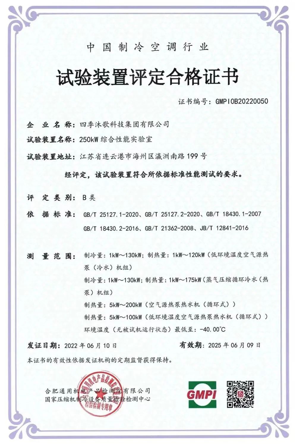 一直以来,四季沐歌致力于以技术创新突破超低温壁垒,整体技术一直处于国内和国际领先水平,以高质量产品推动行业发展。尤其是四季沐歌集团250kW综合性能实验室拥有合肥通用机械产品认证有限公司(GC)认证,成为国内具备零下40℃实验室认定的综合性能实验室,毫无疑问全面展现四季沐歌空气能以东北王者的品质为当地市场提供空气能应用解决方案的能力。