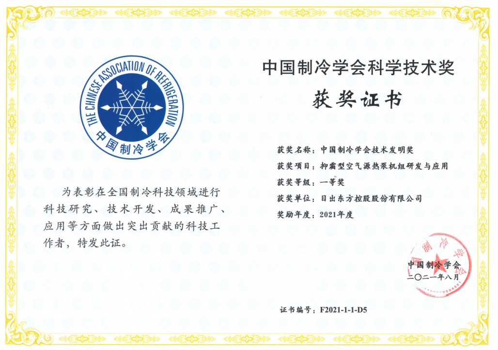 值得一提的是,四季沐歌“抑霜型空气源热泵机组研发与应用”项目荣获中国制冷学会科学技术发明一等奖,该奖项是我国制冷行业科学技术研究成果的最高奖励。