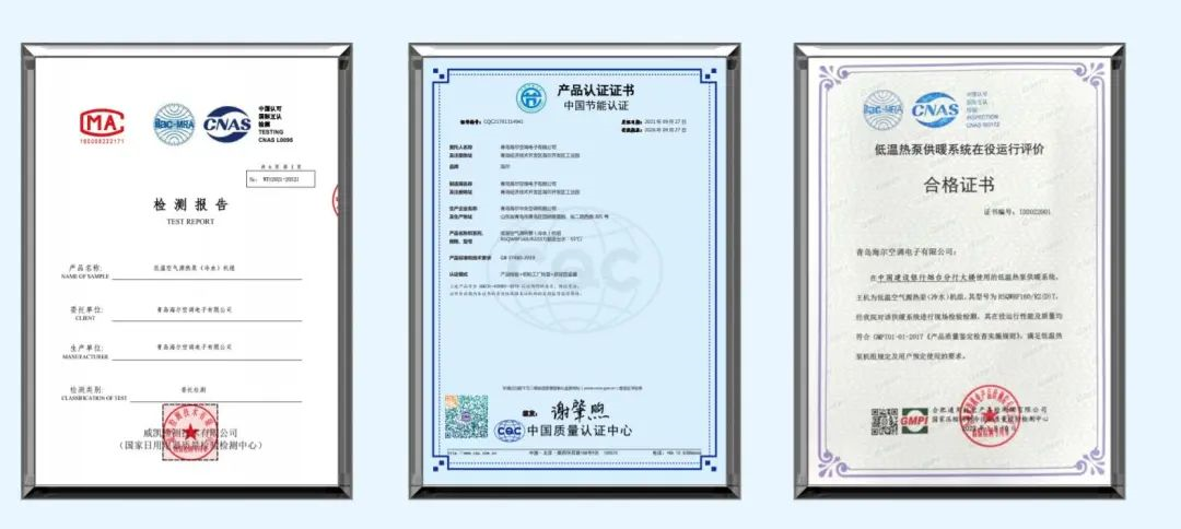 海尔物联超低温空气源热泵采用EVI涡旋超低温喷气增焓压缩机,低温制热能力提升20%,能够在-35℃环境正常启动并稳定运行;冷媒双环路设计,提高机组稳定性。另有,智能防冻,保障低温启动运行。机组满足项目方低温环境下节能、稳定的需求。