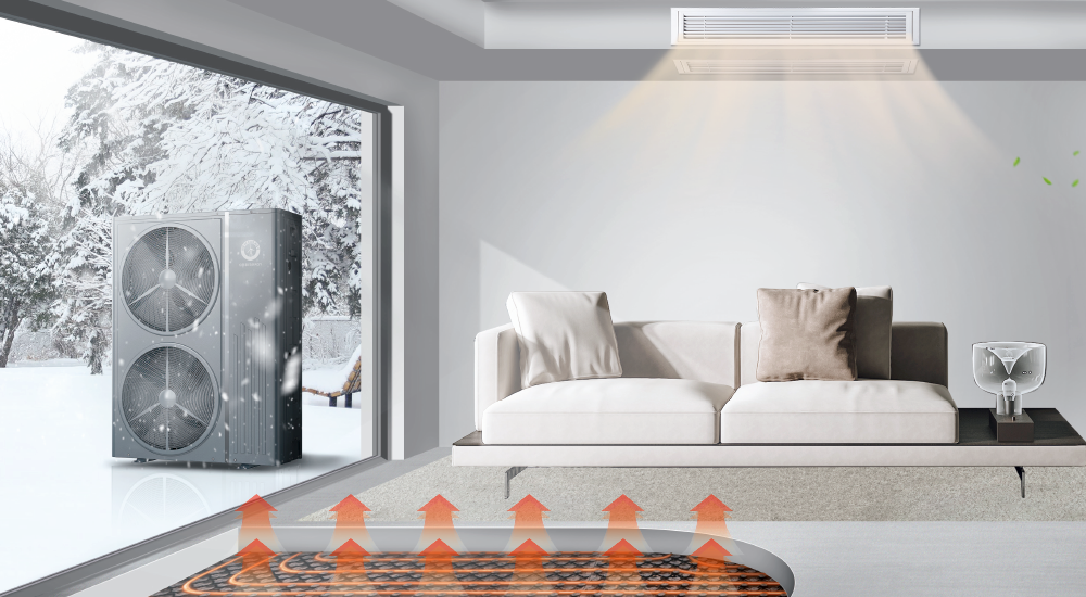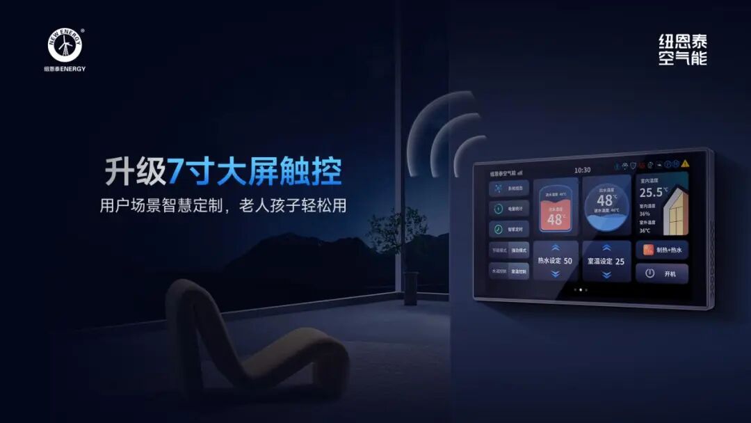 65cc三菱直流变频压缩机提供强劲动力,配合3排波纹翅片蒸发器提升30%换热面积,确保大空间供暖高效均匀。更值得一提的是,其“一机三用”设计整合了采暖、中央空调与中央热水功能,7寸大屏触控+远程云控功能,让别墅业主可随时调节各区域温度,下班路上提前开启供暖,回家即刻享受舒适温度,真正实现智能大宅的舒适体验升级。