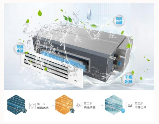 在我开启自清洁之后,可快速冲刷空调换热器表面灰尘,高温杀除蒸发器表面99.9%的细菌,为您和家人提供更健康、更安心、更洁净的呼吸保障。