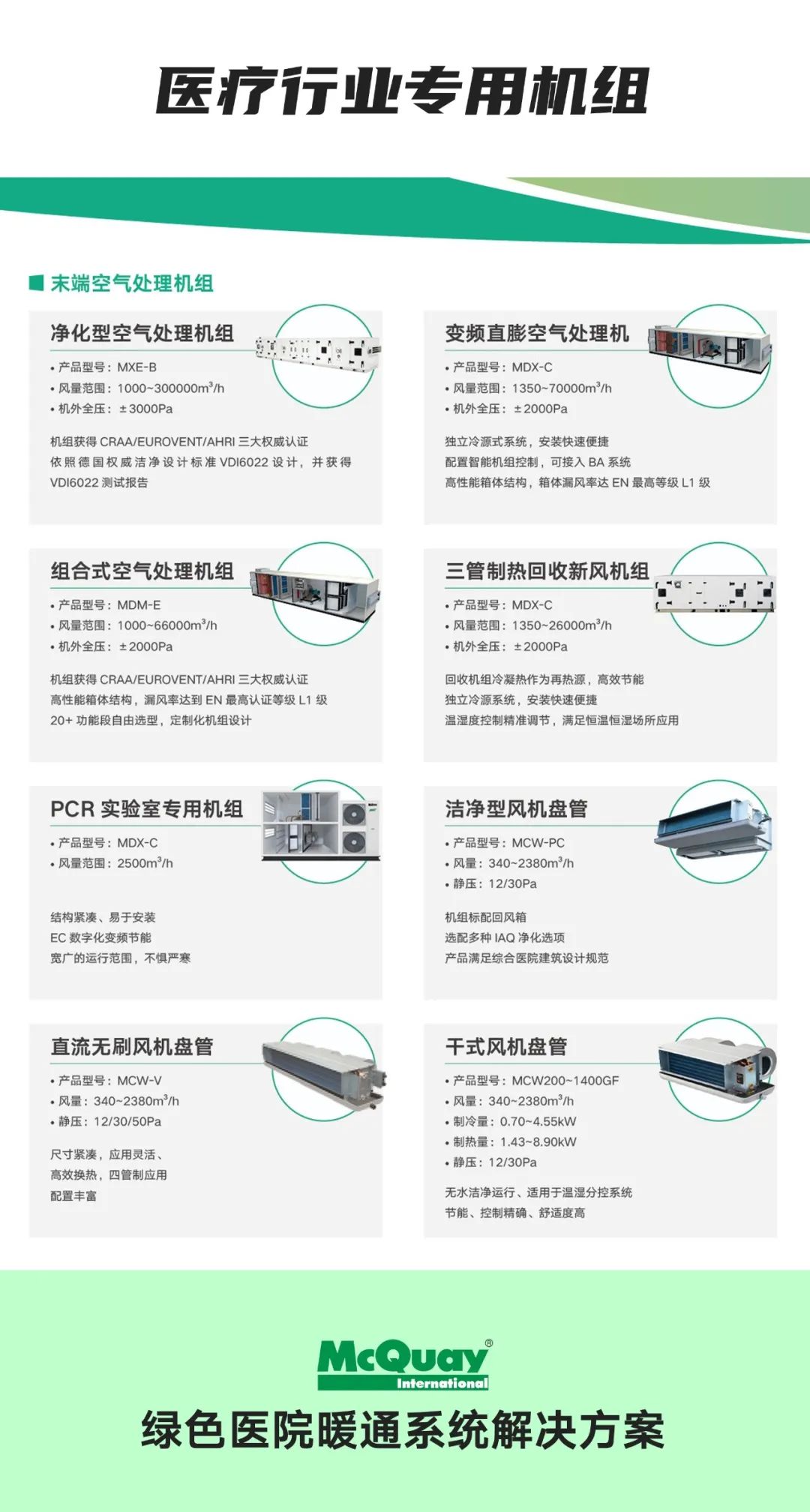 麦克维尔(McQuay)作为净化节能行业的领航者,一直深耕于医疗制药、洁净厂房、科研试验等领域,始终坚持以用户需求为核心,在实践中不断夯实基础的同时,坚持与时俱进,以变革的姿态迎接席卷而来的未来浪潮,持续推出新产品、新技术,以绿色科技为医疗事业保驾护航!