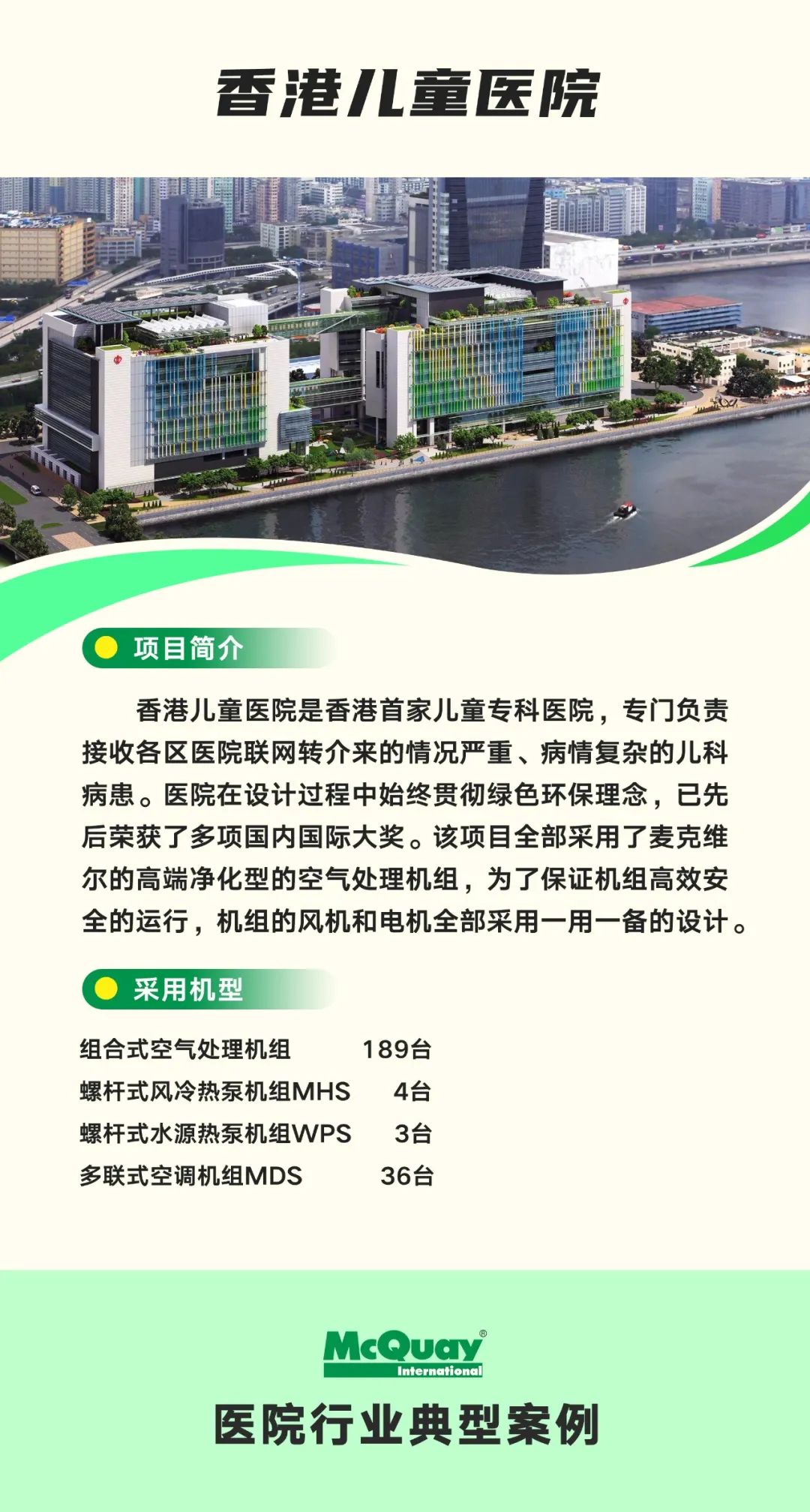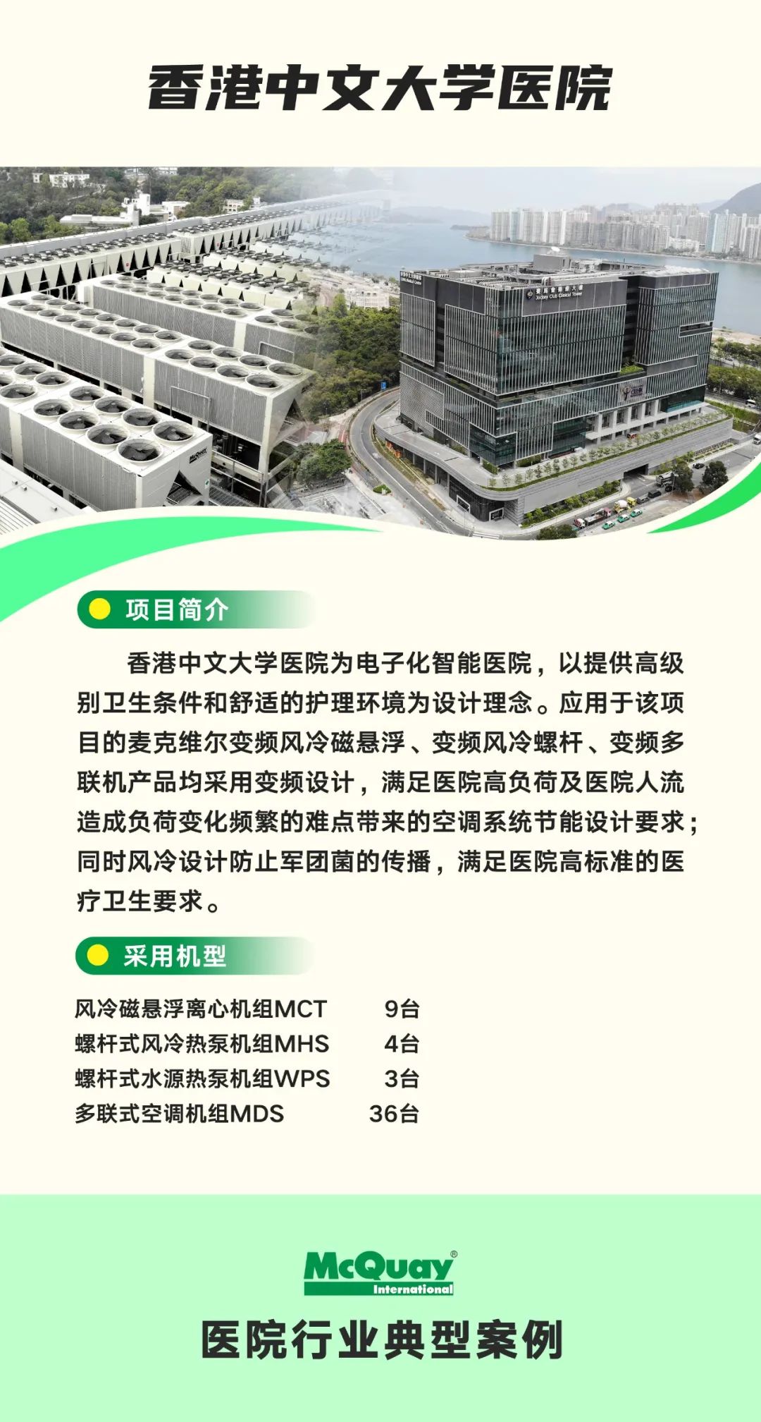 以上应用案例只是麦克维尔助力医疗行业发展的一个缩影。未来,麦克维尔将以科技创新为驱动,以用户需求为中心,继续深耕医疗领域,通过多样化的空调产品和技术解决方案,助力医院实现绿色建设!