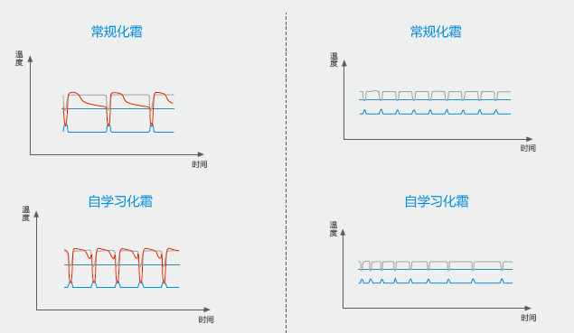 低湿度工况,结霜慢,结霜少,延长加热时间,减少化霜次数,提升能力(右)