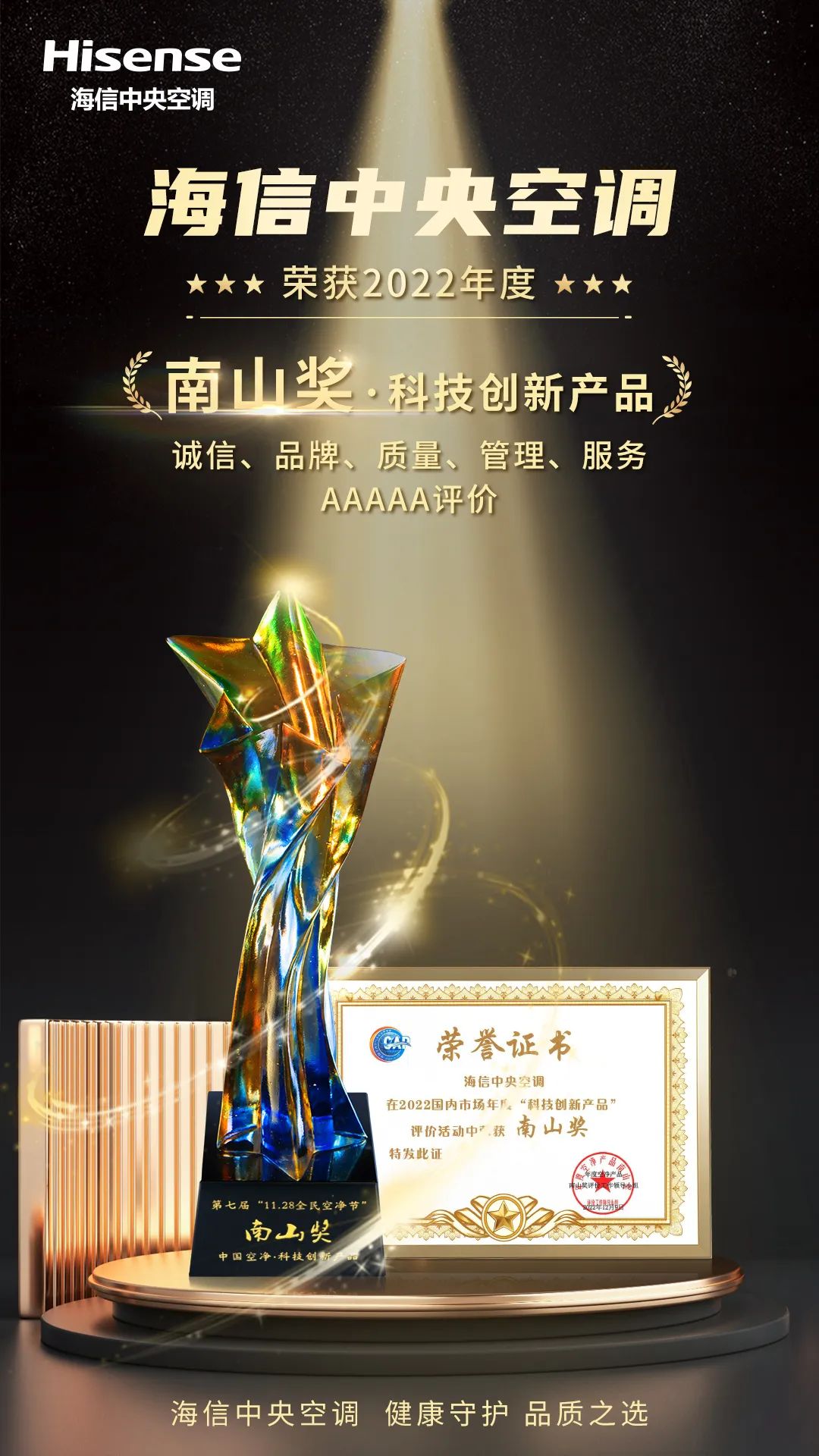 与此同时,在广东省室内环境卫生行业协会举办的第四届第二次全体会员代表大会上,青岛海信日立空调系统有限公司还获得了“2022年度‘诚信、品牌、质量、管理、服务AAAAA’”评价。