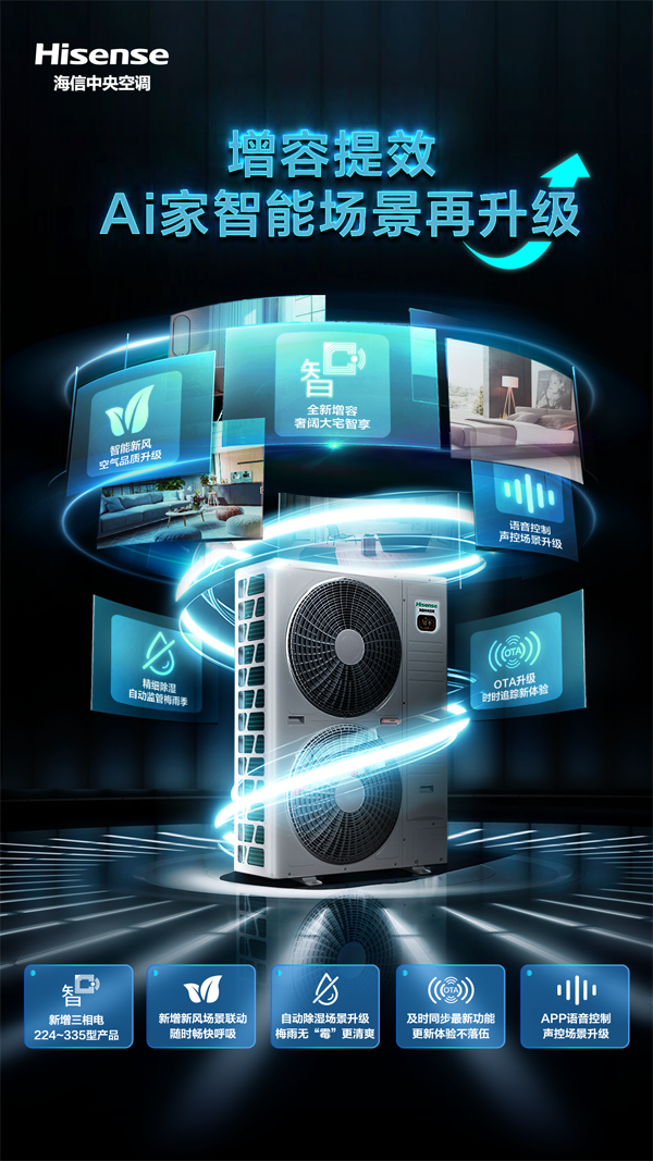 随着人们对健康空气的关注越发高涨,对中央空调的需求从单纯控温转变为健康+节能+智能的复合型需求,海信中央空调也在不断深研技术,推陈出新,为消费者提供更健康、更智能的美好生活。
