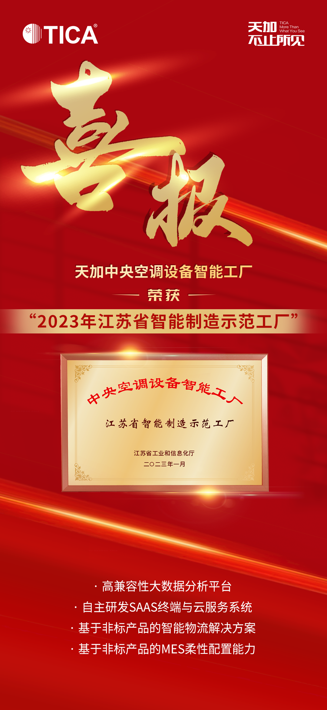 制造强国看天加丨天加获评“2023江苏省智能制造示范工厂”