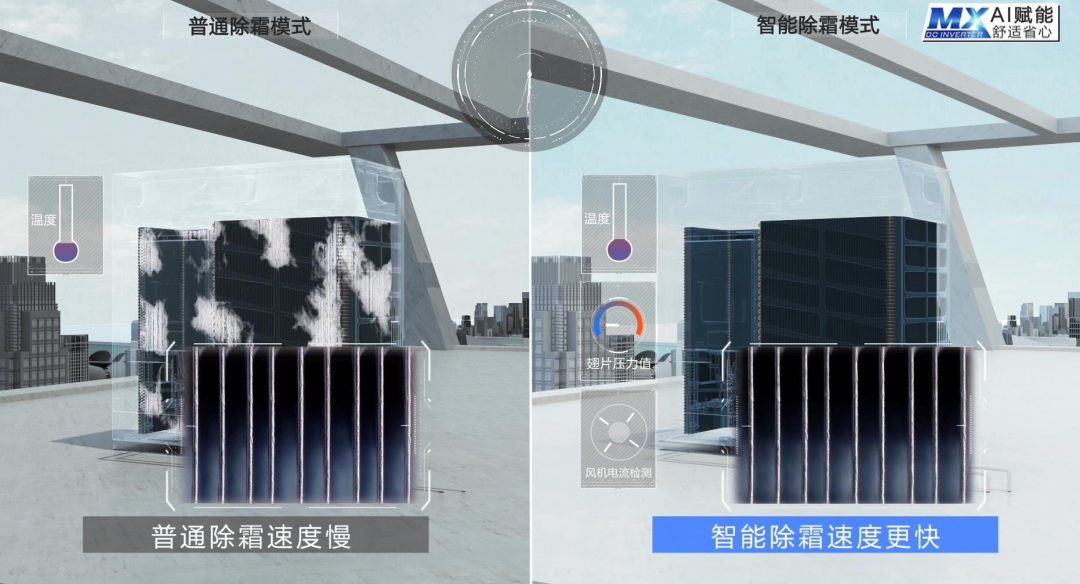 海尔物联多联机无限冷暖系列采用全直流变频柔性压缩机和超高效直流无刷电机,机组能耗更低;智能除霜,保证机组稳定运行;超导液冷媒散热,降低机组能耗,运行更节能。