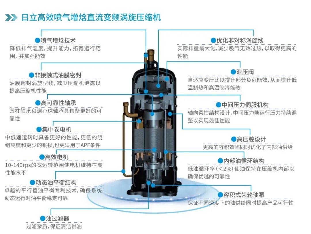 核心动力源泉,部分负荷效率提升更加符合低环温制热机组运行特点,采用柔性涡旋压缩机技术,容积效率高,柔性密封,极大增加了抗液击能力,效率高,寿命长。