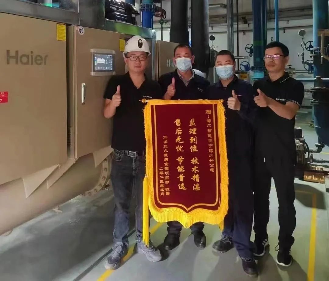 在安装过程中,海尔智慧楼宇为保证项目进度与安装质量,对项目全程进行安装监理,规范化的安装管理有效保障了施工进度!项目结束后,海尔智慧楼宇售后服务团队收到了华润三九医药送上的锦旗,锦旗上赫然书写着“监理到位 技术精湛 售后无忧 节能首选”十六个大字。