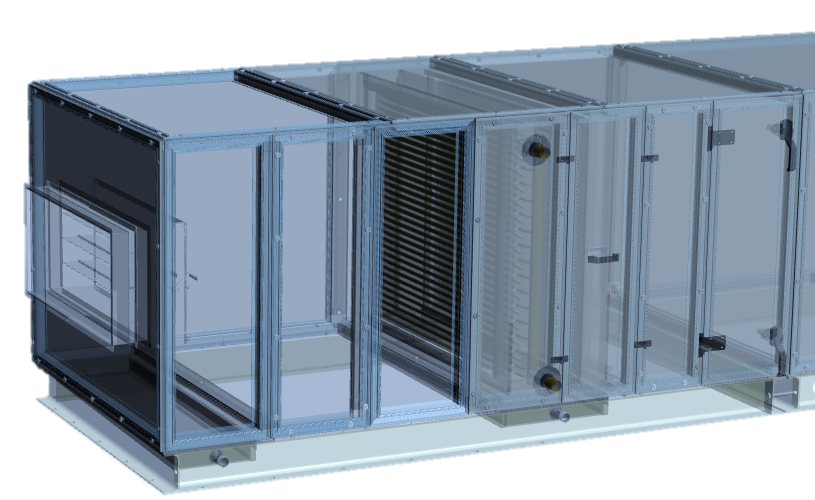 为了达到净化等级,生物制药空调配备多级的空气过滤器,空气处理机的余压高。MXE机组采用1.0mm厚钢板,机组最高承压到达3000Pa,满足空调系统的设计要求。