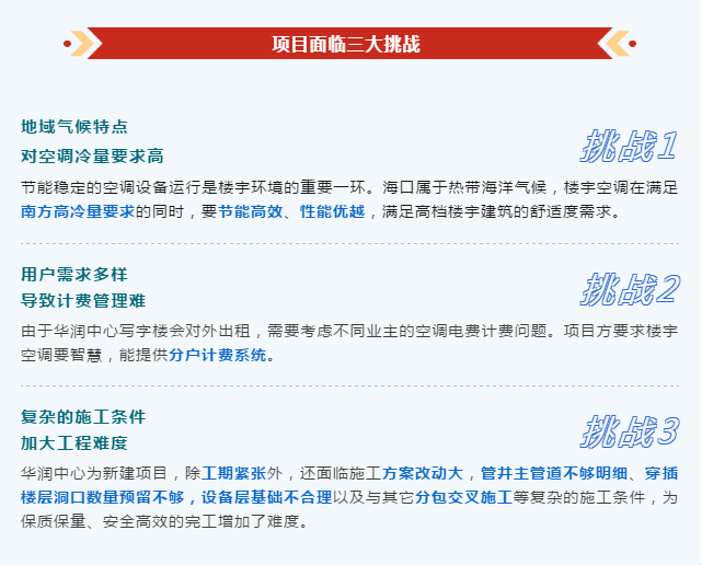 海尔物联多联机具有机组通电自联网、运行策略自适应、远程升级自优化三大智慧功能,可实现无线通信,智慧连接,自动识别内外机落差,最高可达110m,完美解决海口华润中心项目需求。
