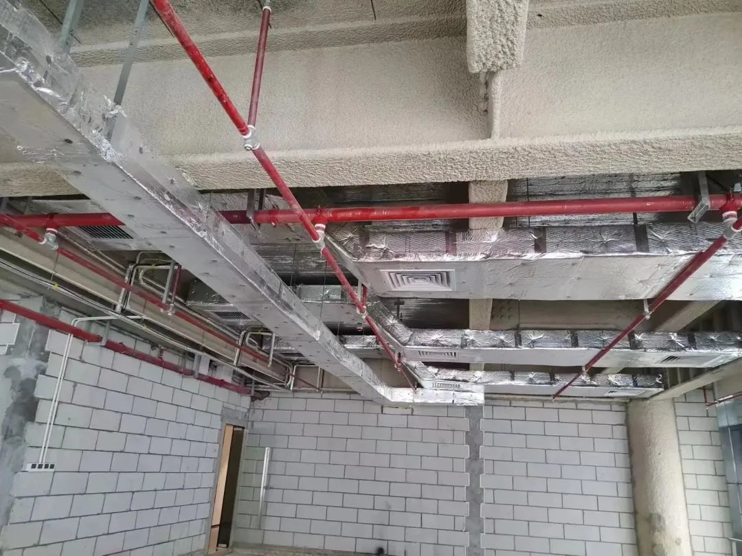 工程建设过程中,施工现场条件复杂艰苦。面对管井主管道不够明细、穿插楼层洞口数量预留不够且与其它分包交叉、设备层基础不合理等不利条件,项目团队全员人力施工、迎难而上、攻坚克难;面对施工电梯白天繁忙、项目漏项事宜(空调内外机强电施工)等临时突发状况,项目工作人员加班加点,克服工期压力、资金压力,推动项目施工各个工期节点计划如期顺利完成。