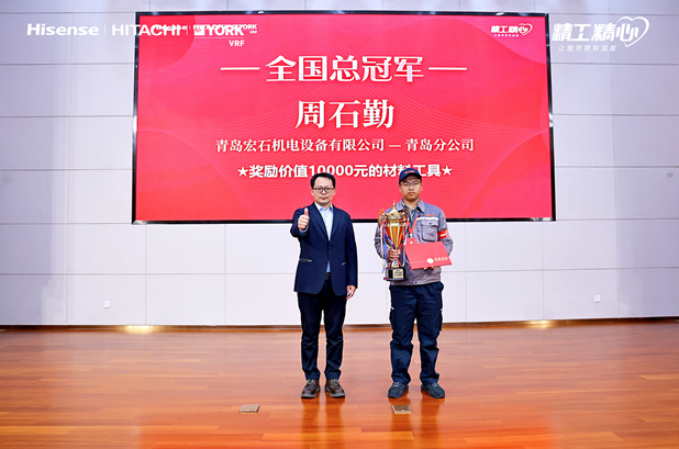 经过紧张激烈有序地角逐,裁判们对选手的表现进行严格点评和专业打分。其中,来自海信日立青岛分公司的周石勤荣获了本次大赛的全国冠军称号。周石勤在接受《中央空调市场》采访时表示,“服务和技能是海信日立当下注重的环节,对于服务工程师来说,唯有正确的服务态度和扎实的技能储备才能为用户带来更好的服务体验。”