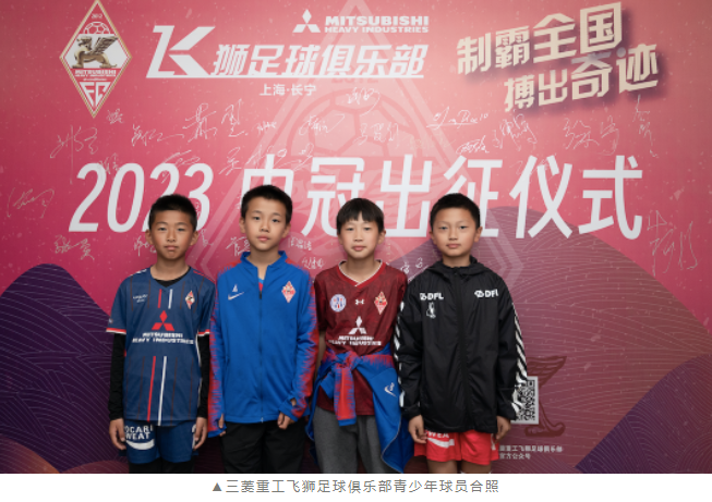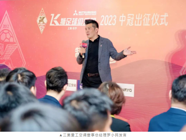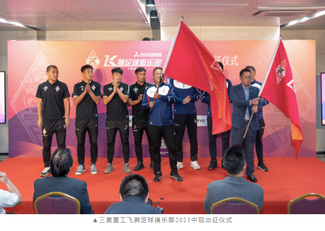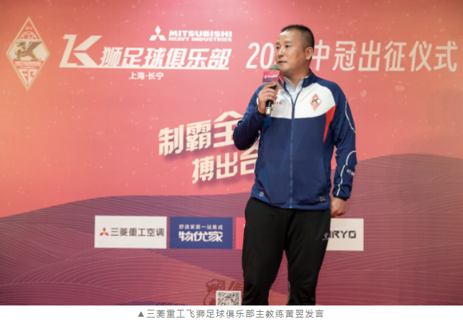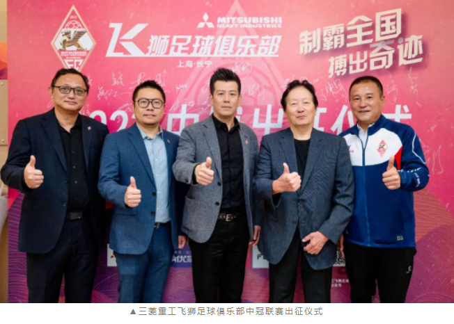 4月28日下午14点,上海长宁三菱重工飞狮足球俱乐部中冠联赛出征仪式暨誓师大会在上海世贸展馆举行。三菱重工空调系统(上海)有限公司董事总经理、上海长宁三菱重工飞狮足球俱乐部会长罗小民、上海市足球协会副秘书长陈富贵、长宁足协主席朱婷婷、长宁区体育管理事务中心副主任戴彬、三菱重工空调系统(上海)有限公司人力资源部部长、上海长宁三菱重工飞狮足球俱乐部理事长陆宇峰、上海长宁三菱重工飞狮足球俱乐部副理事长张子钦及三菱重工空调、菱感能源、菱感电子、菱感空调的多位高层,中国足协技术组专家朱广沪、锋锐体育线下事业部总经理徐玮、厚湃尔体育公园总经理朱玥,北京合力万盛国际体育上海分公司总经理黄琴及媒体代表们出席了出征仪式。