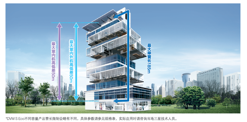 管长自由度高,灵活对应多样的楼体设计,在安装上,同样可以满足多种不同需求。三星侧出风变频压缩机管长自由度高,管长衰减小,使用户不必多虑室外机摆放问题,家居设计变得无拘束,使户型设计便捷回归使用需求。
