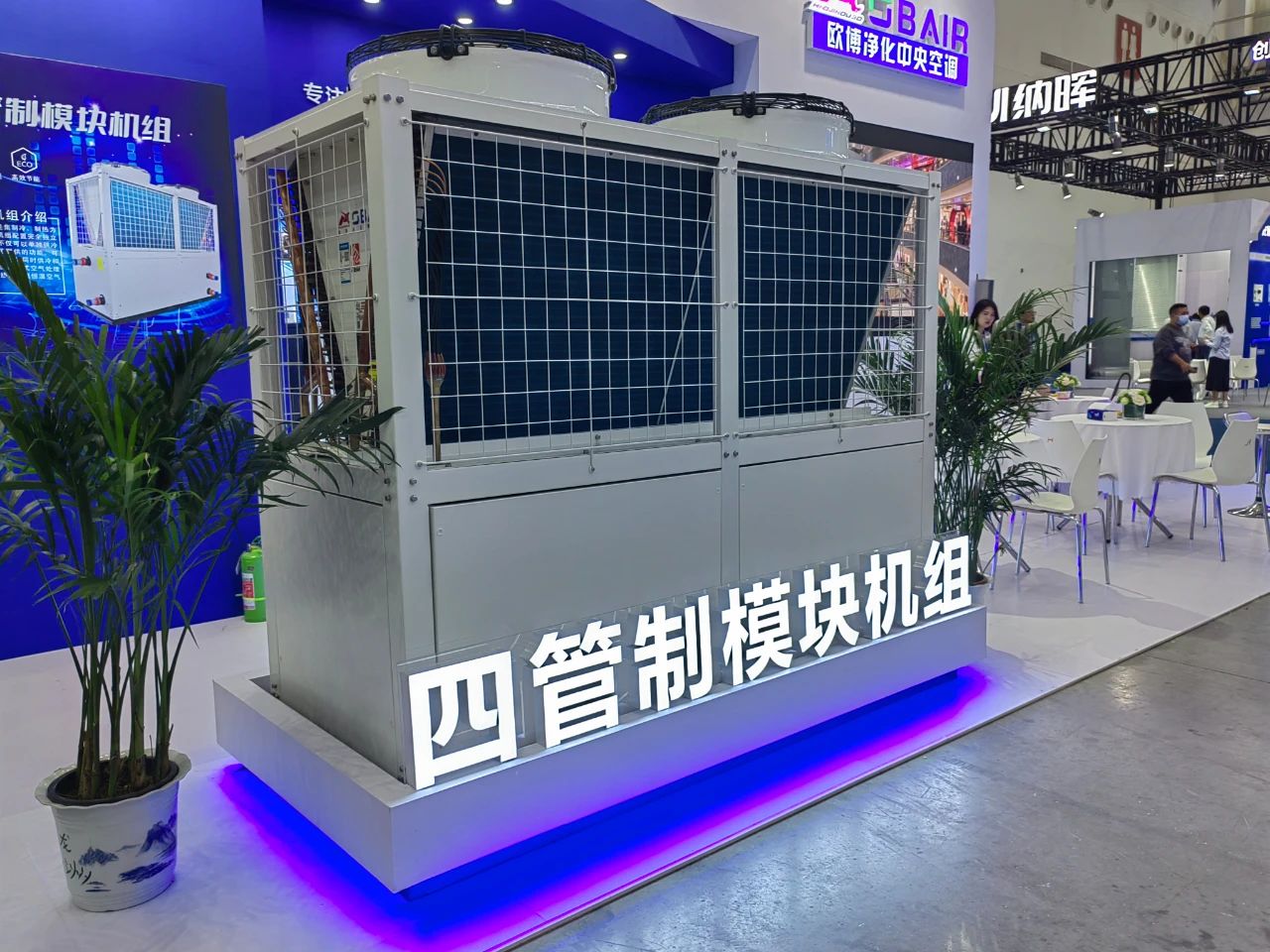 本次展会欧博位于A3馆T17,展位采用蓝色为主色,搭配明亮柔和的射灯,照射在机组上,显得科技而极具活力。