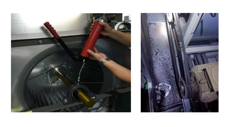 ● 送风机是主要动力输送部件,持续高速运转,轴承定期加注润滑油脂是最核心的维护工作,注入油脂确保有效。(建议加注周期:每运行2500-3000小时)