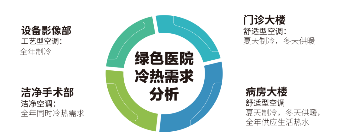 针对温湿度有严格要求的场合,空气处理过程存在冷却除湿和再热需求,这也就是在空气处理过程中存在冷却和加热的过程,即需要冷热源同时提供冷和热。如,医院的洁净手术室即是典型的全年都同时需要冷源和热源的系统。