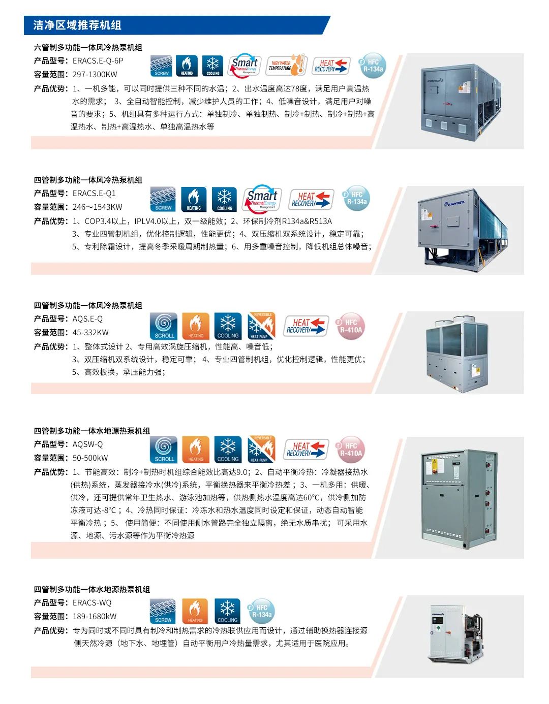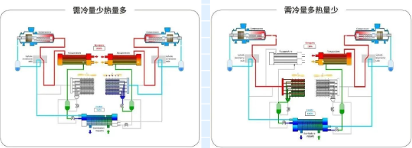 克莱门特四管制多功能冷热水机组将制冷的散热与制热的吸热耦合在一起,同时供应空调冷冻水和热水,一台机组即可满足洁净室同时供冷供热的需求,无需建设两套独立的冷热源。