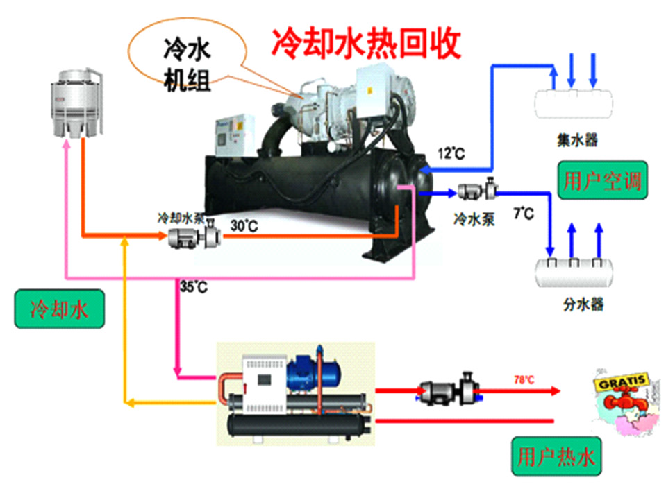 ●空调全年同时制冷和制热。同时提供卫生热水,替代锅炉。