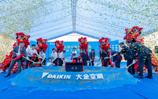 该项目由日本大金工业株式会社全资子公司大金(中国)投资有限公司投资建设,主要为VRV家用空调、变频器P板生产基地和华南地区销售中心、物流中心。项目总投资17.5亿元,总用地面积约22万平方米。其中一期项目建筑面积6万平方米,计划2024年10月投用。这一项目也是大金在上海、苏州之后设立的第三个大型生产基地,是大金在华南地区布局的第一个生产基地,建成后将成为大金在国内最大的生产基地。