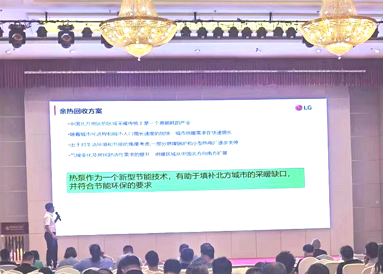 会上,LG中央空调参会代表还做了“大型热泵余热回收清洁供暖应用”的主题讲解,通过对产品矩阵的着重讲解和产品应用项目的示例,深入介绍了多年来LG在低碳产品技术层面的探索与深耕,将会议气氛推向高潮。