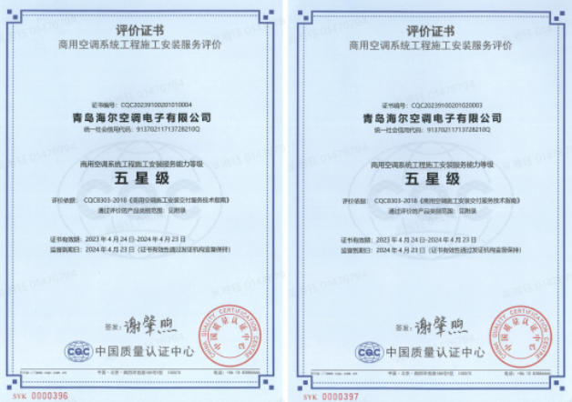 海尔中央空调此次荣获“商用空调系统工程施工安装服务能力等级五星级”双项证书,这无疑是业界对海尔中央空调在售后服务体系方面的高度认可。未来,海尔中央空调将持续以用户需求为核心,聚焦高品质服务,不断升级用户体验,全面协调从设计、施工到安装等全流程,为用户提供个性化售后服务需求。