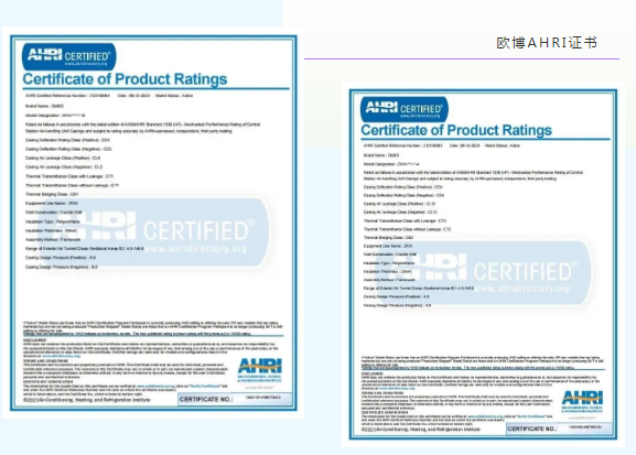 欧博空调产品获得AHRI权威认证,助力欧博走向全球!