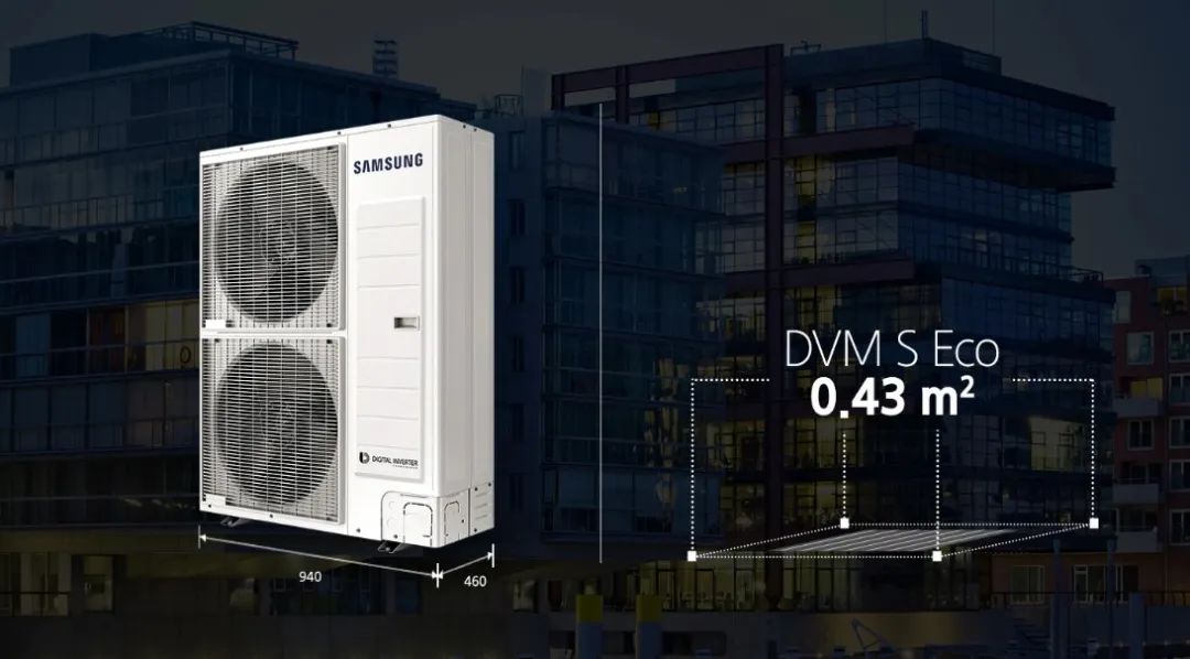 三星侧出风变频多联机有效减少占地面积, 7~14HP的大容量设备,比三星传统设备体积减少近60%,摆放更加随意,对于常用的4~6HP容量,设计三种不同高度的室外机产品,适配多种安装需求,840mm小巧身形,轻松置于飘窗下,四个不同方向的接管,便捷安装无压力。