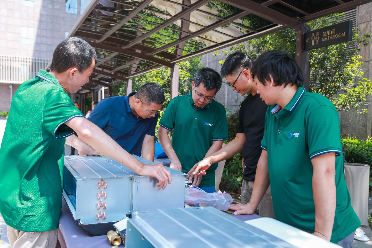 (活动现场展示了瓴信最新的研发成果,引发了现场专家和客户的踊跃关注,就新产品的性能、安装、售后等方面与瓴信空调的技术人员进行了热烈的交流)