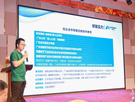 在末端产品及技术宣讲环节,瓴信空调工程师区志康先生表示末端产品与主机产品同等重要,作为瓴信空调的拳头产品——LXFP系列风机盘管机组采用四大知名电机品牌和高分子增强型材料蜗壳,高能效低噪音,安装和拆卸简单,灵活应用在各个场所。