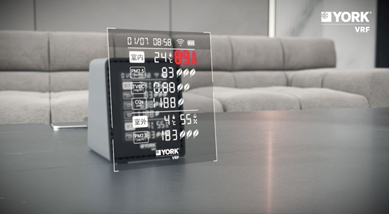 约克热水中央空调可采用3D送风面板,立体柔和送风,避免冷风直吹人体;室内机与线控器温度传感器结合,帮助用户将室内温度控制在稳定舒适的温区。还有约克小方实时监测室内空气质量,根据室内空气情况,自动联动开启全屋空气设备,为用户时时打造畅爽呼吸的清凉舒适环境。