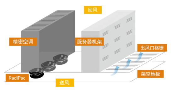 法兰克福1号的每台精密空调上各配有三台RadiPac。