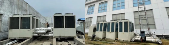 目前园区内的空调系统采用风冷涡旋式模块机组作为冷热源,随着产线增加而逐步增加,分布分散具有以下缺点: