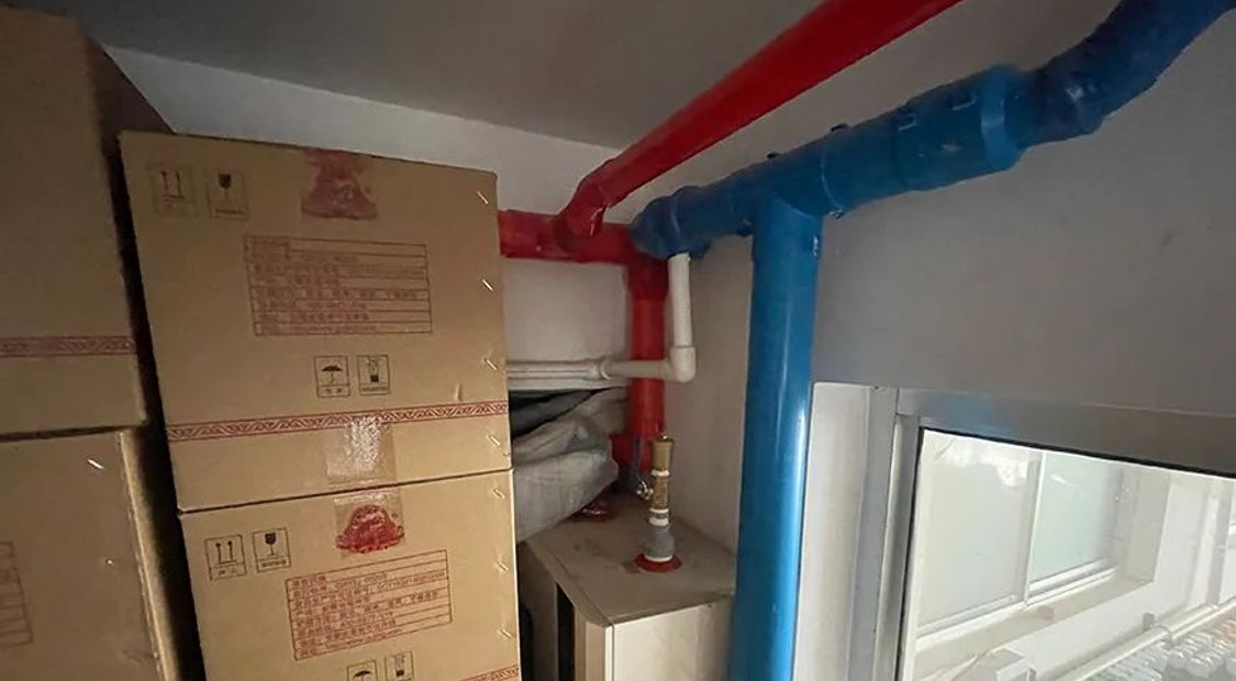 海信安装人员将主机安装在超市外墙地面,采用槽钢支架架高,避免积雪和化霜水的影响;四角均安装了减震垫;室外管道采用橡塑保温,同时采用胶带固定;室外线路全部安装在PPR管道内;为保证系统的稳定性,还安装了一个60L的方形水箱,安装在储物间的夹层。
