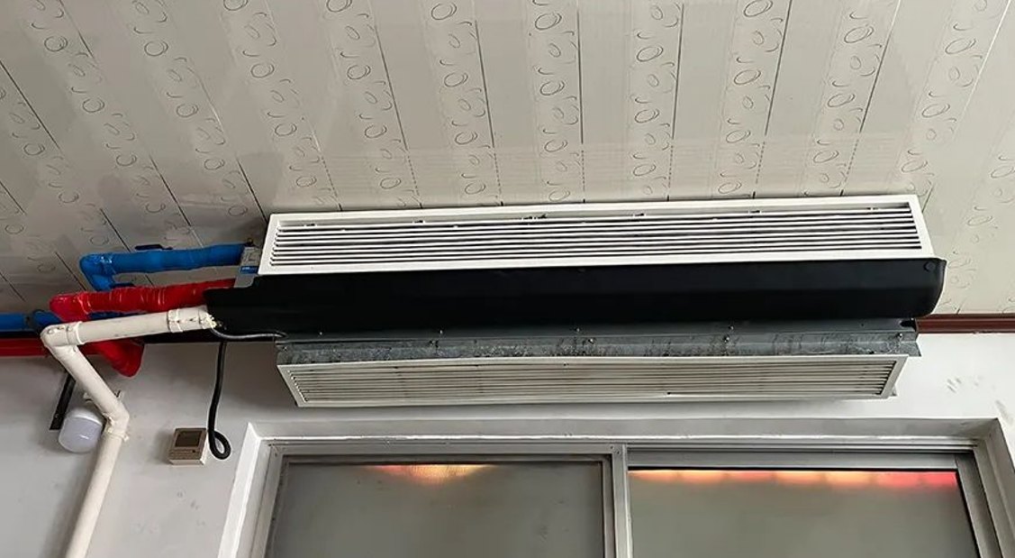冬季室内末端沿用原来的暖气片,重新安装了风盘作为制冷末端,分布在超市和客厅内,每一个风盘都可以单独控制。