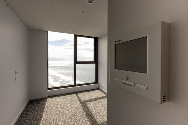 这里夏天的温度常常持续在35°C以上,考虑到这栋大楼的规模与位置,以及76层全玻璃幕墙的设计,需要一个能够应对巨大热负荷的可靠空调方案。为了体现建筑的豪华设计,也为了让所有的住户提升舒适度,空调方案需要隐藏在住户和客人的视线中,运行过程中也要十分安静,这对于室内机的选择是一个巨大的挑战。