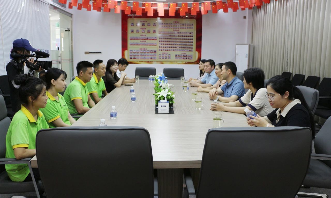 9月21日下午,在中秋佳节来临之际,江西省总工会一级巡视员吴海平、省总工会财务部部长余萍、省总工会财务部二级主任张蔓、赣州市总工会党组成员、副主席徐雅静、市总工会权益维护部副部长钟冰一行在赣县区人大常委会副主任、区总工会党组书记、主席邱春凡,区总工会党组成员、常务副主席朱晓芹等领导的陪同下走进欧博空调,开展“庆丰收·送关爱·促和美”走访慰问活动!