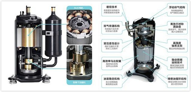 三星侧出风变频多联机使用高效双转子压缩机,双转子对称设计,使压缩机的运行平稳,马达驱动结构优化,低速运行情况下效率得到提升,定转子高度间隙优化,运行噪音低;高压腔涡旋式增焓压缩机超精密加工的不对称涡旋盘设计,实现压缩机进气连续效果。