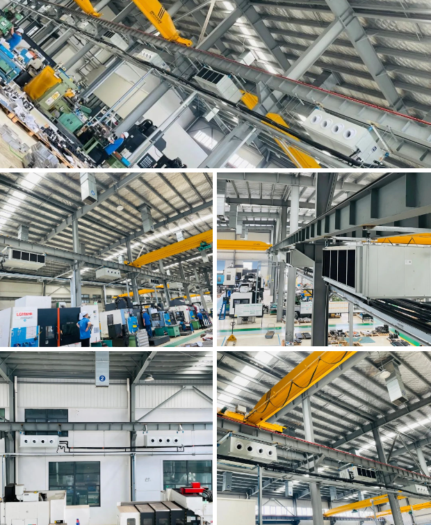 EK工业机组集成工业防腐、一拖多应用、温湿双控、空气净化、远距离送风、智能控制等特点,已广泛用于航吊车间、机械加工车间等高大空间场所。未来EK将不断创新,为工业场所带来更多稳定节能的产品。
