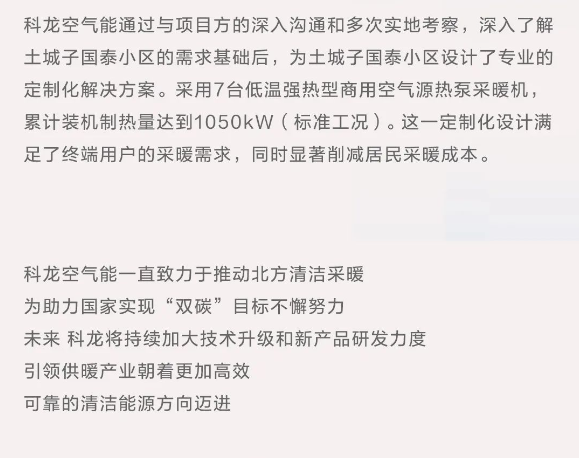 双碳时代的选择|科龙空气能助力清洁供暖改造