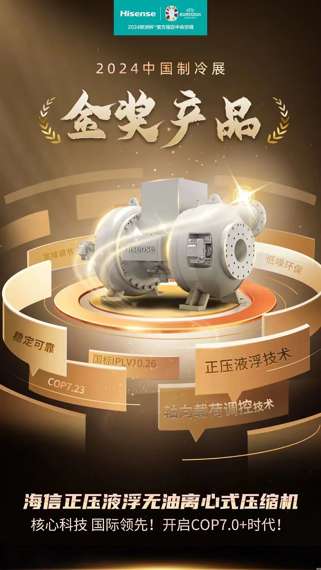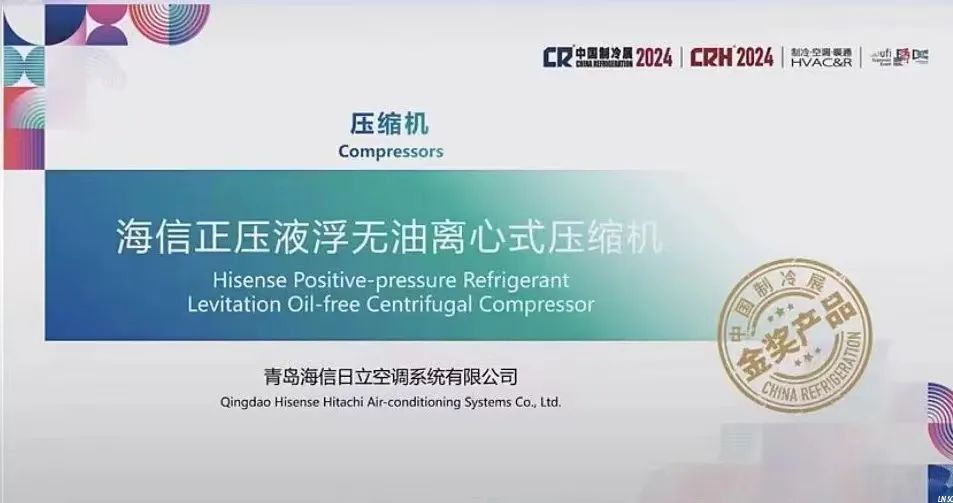 品类唯一!海信正压液浮无油离心式压缩机斩获2024中国制冷展“金奖产品”!