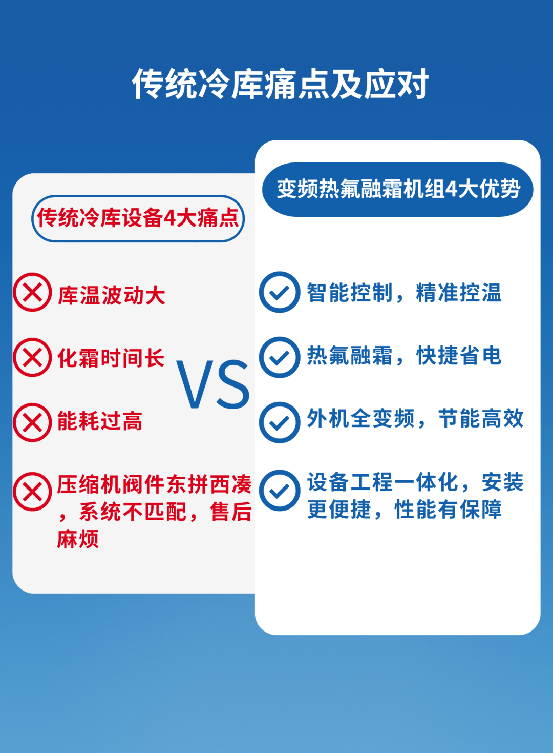 麦克维尔深知市场脉搏,对冷库用户的痛点和需求有着深入的了解。正是基于对市场的深度剖析,我们成功塑造了全新的变频热氟融霜冷冻冷藏机组,它不仅技术领先,更贴合用户需求,为中国冷链物流行业的稳健发展保驾护航。