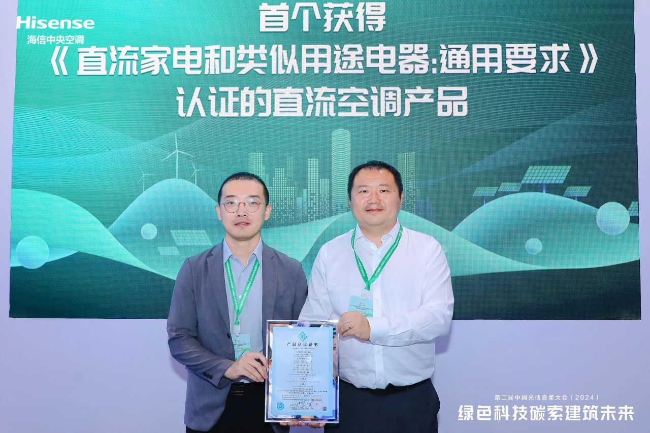 再获认证 引光锋芒!海信中央空调实力绽放“第二届中国光储直柔大会(2024)”
